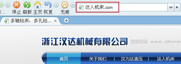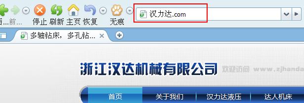 為方便客戶(hù)查看我司網(wǎng)站,我司申請(qǐng)了中文域名"達(dá)人機(jī)床.com“"漢力達(dá).com",您只要在地址欄中輸入 "達(dá)人機(jī)床.com" 或者"漢力達(dá).com”即可訪問(wèn)到浙江漢達(dá)機(jī)械有限公司的官方網(wǎng)站。