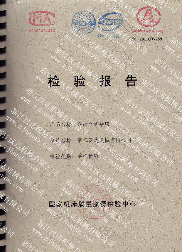 我公司研發(fā)制造的達人牌多軸立式鉆床,通過了國家機床質(zhì)量監(jiān)督檢驗中心的質(zhì)量檢驗,